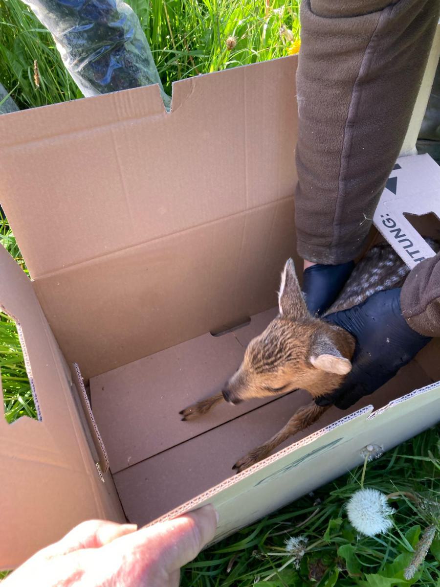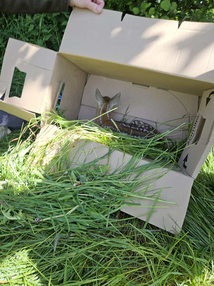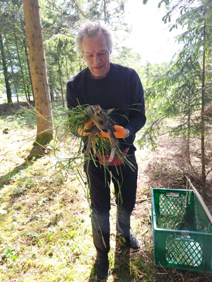Auch im Revier Irsingen, in dem ich ebenfalls tätig bin, konnten wir immerhin zwei Kitze finden und sichern. Anschließend konnten wir diese zwei Kitze wohlbehalten in der Deckung des Waldes wieder aussetzen. Noch ein kleiner Hinweis. Die Personen, die hier nicht unkenntlich gemacht wurden, haben ausdrücklich der Veröffentlichung zugestimmt.