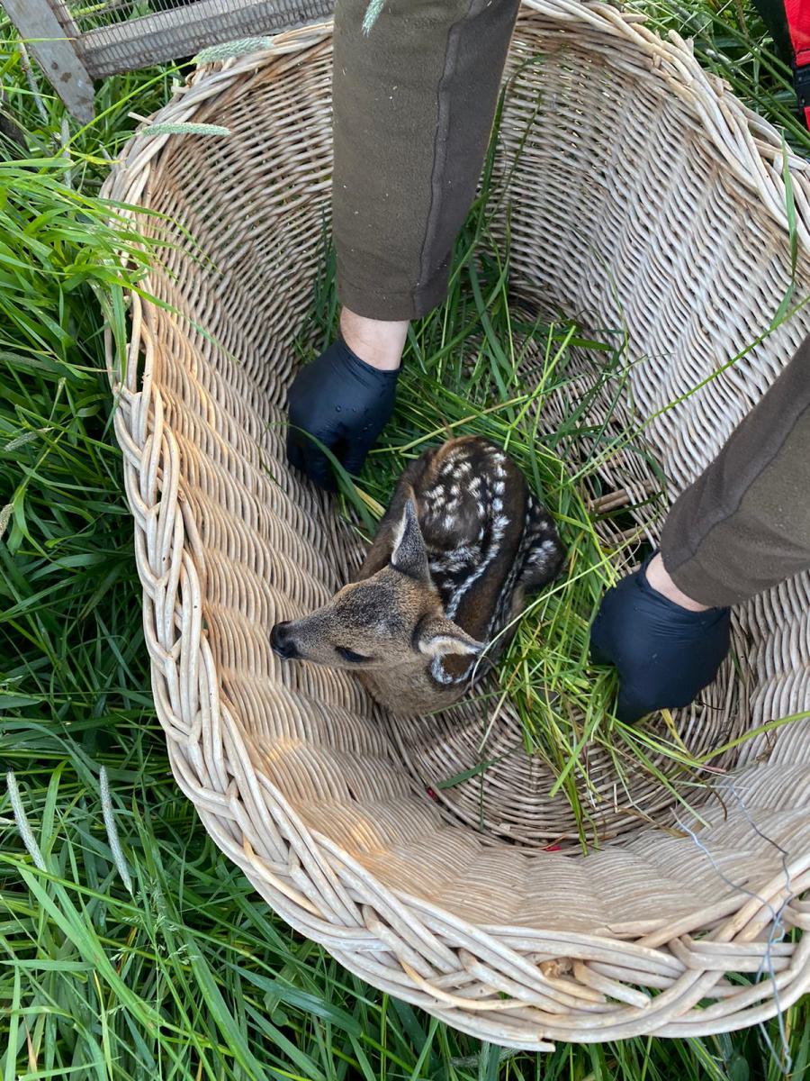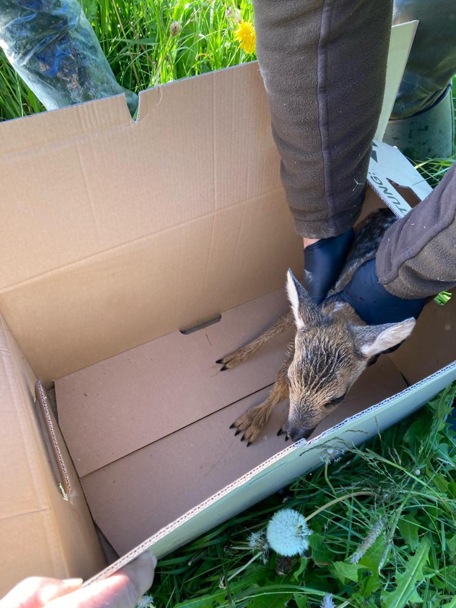 Am 11 Mai war ich wieder mit meiner Drohne im Revier Emmenhausen tätig. Diesmal war die Absuche erfolgreich. Zu Beginn haben wir gleich zwei ganz kleine Kitze gefunden. Die waren etwa 2 bis 3 Tage alt. Etwas später haben wir noch ein etwas älteres Kitz entdeckt. Das hatte schon einen beginnenden Fluchtreflex. Die Helfer hatten Mühe, es einzufangen. So war dieser Tag für unsere kleine, aber effektive Truppe doch sehr erfolgreich.